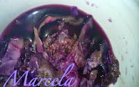 Bir parça kırmızı lahana az suda rengini çıkana kadar haşladım.