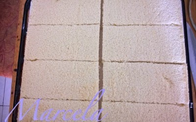 Hamurları koymadan önce ben kabuğu bıçakla çıkartıyorum ki krema daha güzel yapışsın. Paşalarım bu bölümü çok seviyorlar. Çıkan krema bir vagona tam geldi. Göz kararı dörde bölüyoruz ve dört parça hamuru üç bölüm krema ile üst üstte birleştiriyoruz. Dördüncü bölüm ise dış tarafına sürüyoruz. Bir poşete örterek buzdolabına en azında 2-3 saat koyabiliriz şimdilik. Pastamızı bitişinde vagonları daha kolay taşıyabilmek için her vagonu birer kağıt parçasını üstüne koyabiliriz.